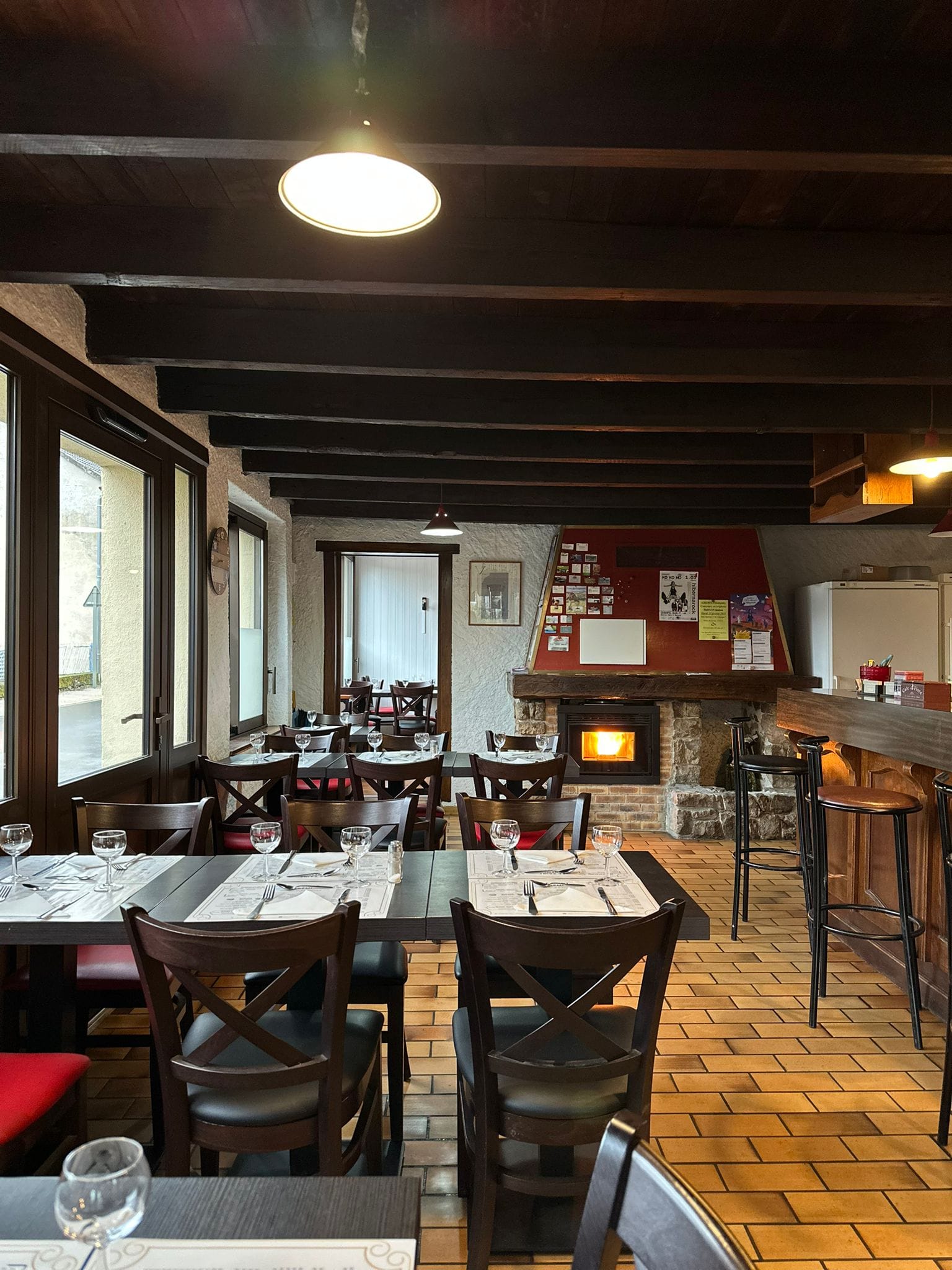 La salle dispose d’une cuisine professionnelle, d’un bar avec comptoir et peut accueillir une trentaine de personnes assises dans un cadre convivial.