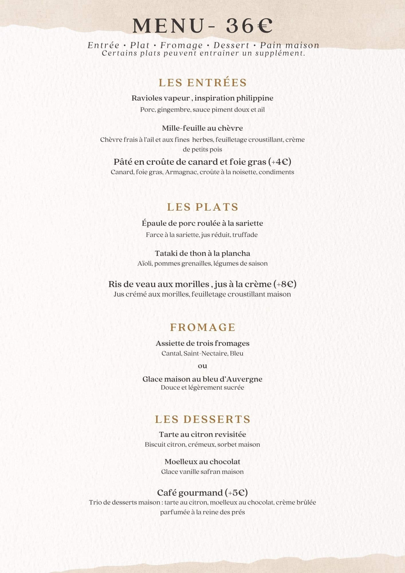 Inspirée par les saisons et par le travail de producteurs locaux, notre cuisine se veut sincère, gourmande et généreuse.